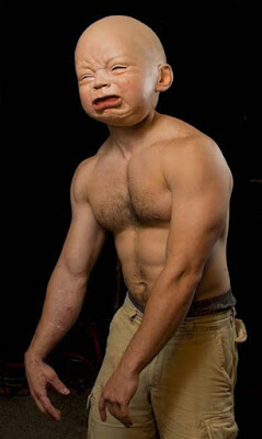 It’s a fancy dress party accessory that gives a whole new meaning to the phrase ‘little monster’; Landon Meier uses latex to create oversized babies’ heads that he sells online.